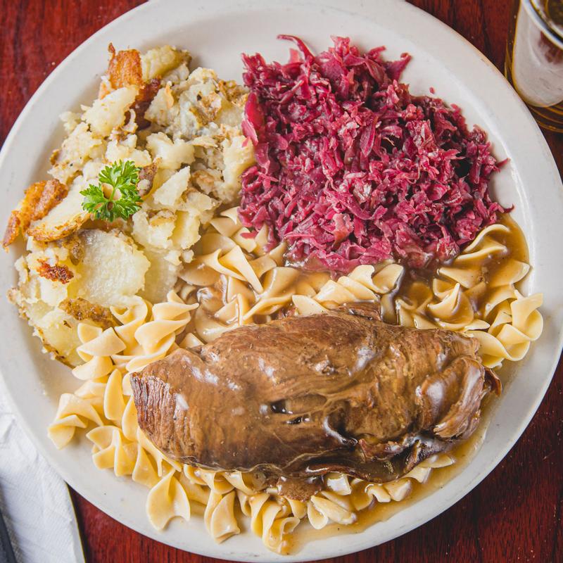 We had sausage, German fried potatoes, red cabbage, burger and fries, and schnitzel. All were delicious. Clean restrooms. Nice aesthetics throughout. USB plugs at the bar for charging mobile devices. Looks like around 100 beers on tap. Highly recommended if this is your flavor.